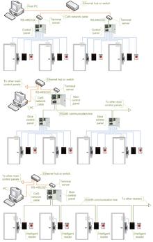 Access control decisions are made by comparing the credential to an access control list. This lookup can be done by a host or server, by an access control panel, or by a reader. The development of access control systems has seen a steady push of the lookup out from a central host to the edge of the system, or the reader. The predominate topology circa 2009 is hub and spoke with a control panel as the hub and the readers as the spokes. The lookup and control functions are by the control panel. The spokes communicate through a serial connection; usually RS485. Some manufactures are pushing the decision making to the edge by placing a controller at the door. The controllers are IP enabled and connect to a host and database using standard networks.